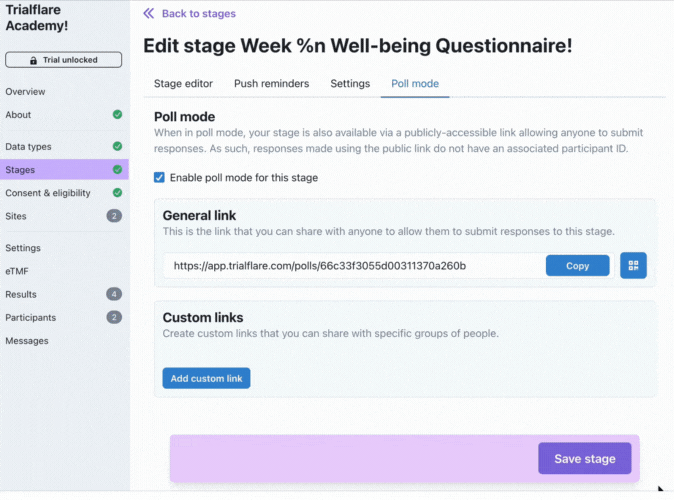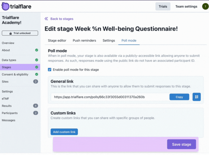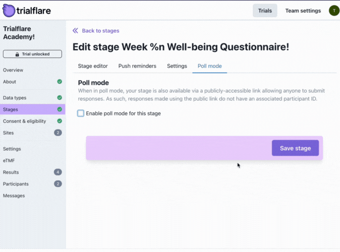 With Trialflare's polls capability, you can convert any stage into a poll.