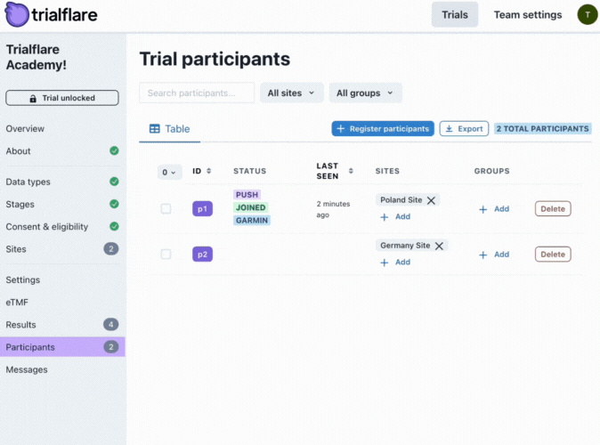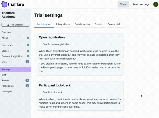 If the participant wishes to disconnect their account, they can also do this in the Trialflare app.